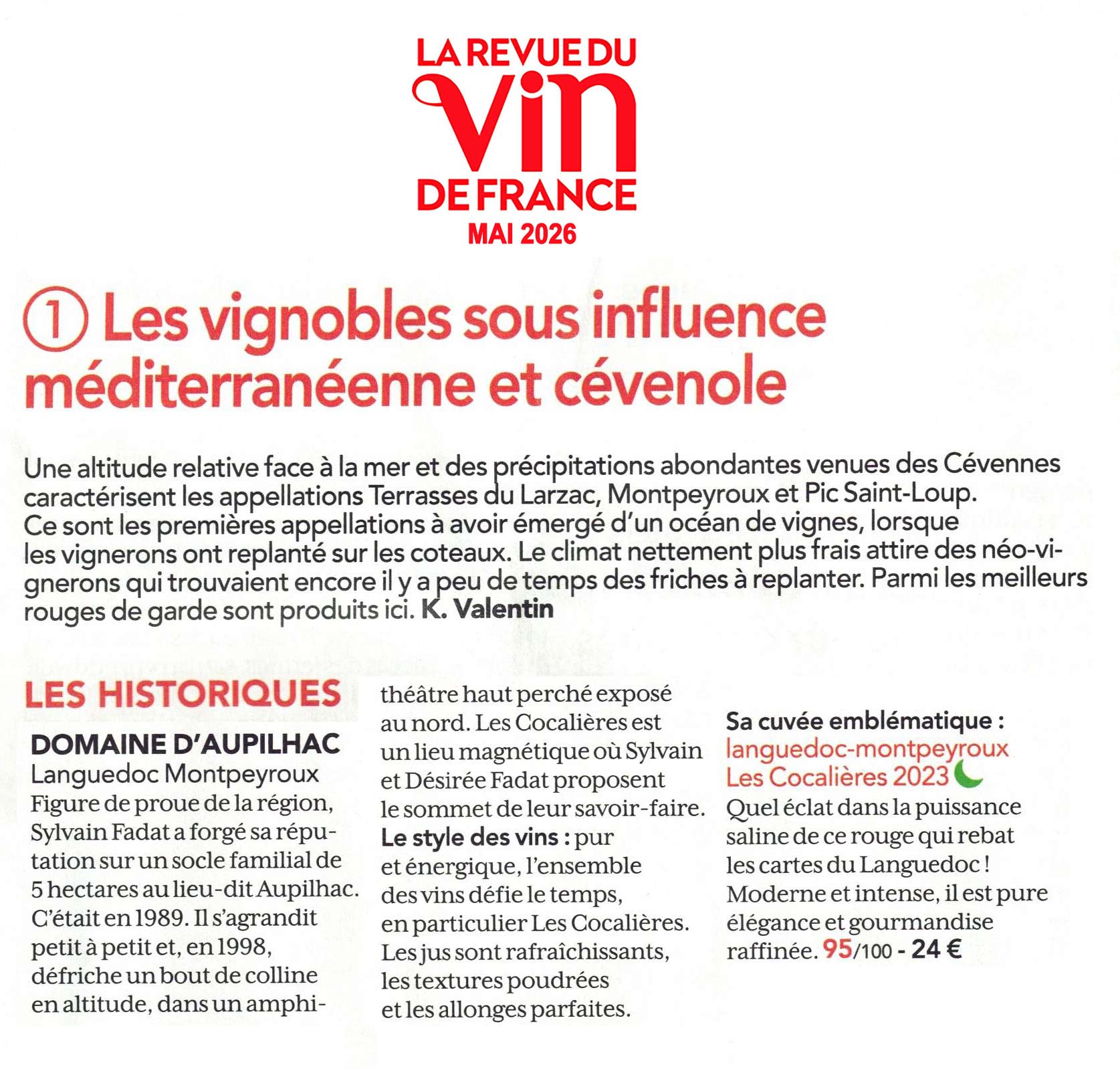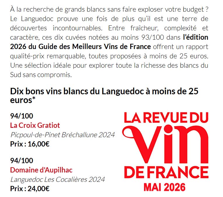 Les Vins Blancs d'Aupilhac à l'Honneur dans la RVF